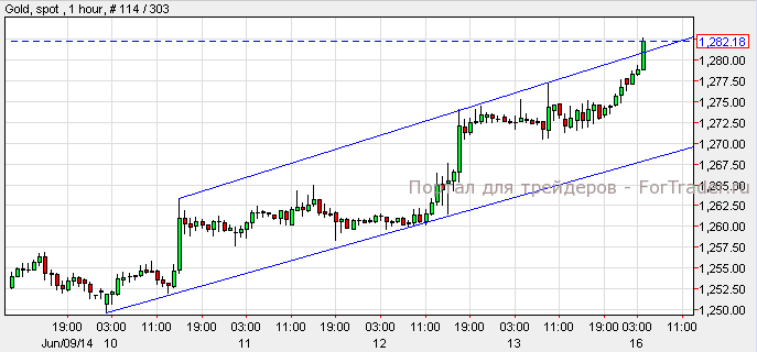 Золото незначительно подорожало и закрылось на цене $1,274 за унцию на фоне роста американских индексов. Согласно техническому анализу 1-часового графика, золото пробило верхнюю линию восходящего канала и может вырасти к цене $1,290. Тем не менее, разворот тренда и прорыв нижней линии канала может стать причиной падения к уровню $1,290.