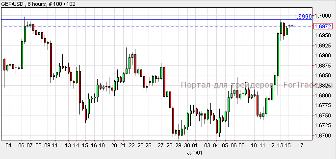 Фунт укрепился против доллара. Согласно техническому анализу 8-часового графика, пара GBP/USD пытается пробить уровень сопротивления 1.6990. В зависимости от результата, пара может вырасти к отметке 1.7500 или упасть к отметке 1.6900.