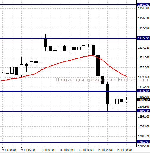 Сегодня в 12.30 GMT будет опубликована статистика по розничным продажам в США. Ожидается, что в июне продажи вырастут на 0,6%(м./м.). Кроме того, в 14.00 GMT состоится выступление председателя ФРС США Джаннет Йеллен, которая обозначит дальнейшее направление в проведении монетарной политики в США. Мы не исключаем, что после вчерашнего снижения, цены на золото сформируют коррекцию от уровня поддержки 1302 долл.