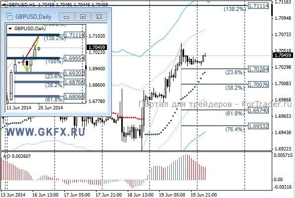 Пара GBPUSD преодолела уровень 1,7000 и направилась вверх, исполнив сделку на покупку по рекомендации. Покупки можно было исполнить по 1,7005 и две цели на уровнях 1,7035 и 1,7055 были достигнуты. Ожидаю, продолжения роста, поэтому удерживаем позицию до третьей цели. Стоп можно передвинуть на уровень 1,7025. На эту неделю традиционно рассматриваю два варианта возможного движения цены, основной красный и альтернативный зеленый. Значимые уровни на сегодня отмечены на часовом графике. Индикатор АО находится в положительной зоне и снижается, указывая на коррекцию перед возможным продолжением роста. Индикатор тренда указывает на рост. Держим покупки от 1,7005 с целью 1,7110.