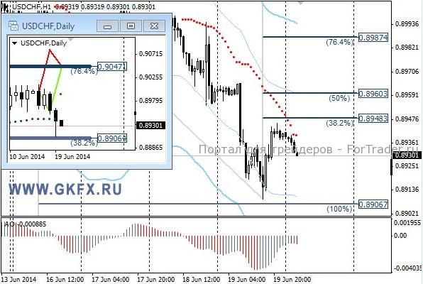 Пара USDCHF двигается обратно евро. Сегодня можно ожидать некоторой консолидации в диапазоне 0,8910-0,8950. Рекомендации по-прежнему не даю, так как движение пары проходит вне плана. На эту неделю традиционно рассматриваю два варианта возможного движения цены, основной красный и альтернативный зеленый. Значимые уровни на сегодня отмечены на часовом графике. Индикатор АО находится в отрицательной зоне и снижается, указывая на желание пары двигаться вниз в данное время. Индикатор тренда указывает на снижение. Вне рынка.