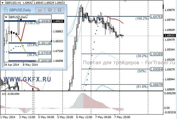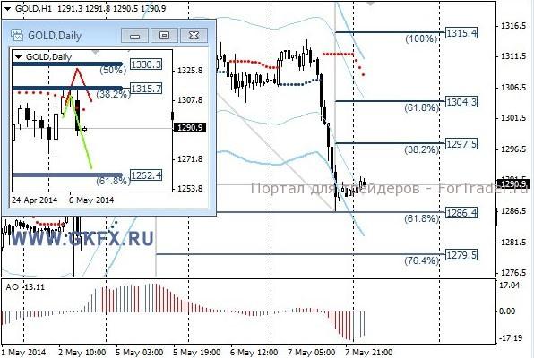 Цены на золото значительно снизились после выступления председателя ФРС Йеллен. Она заявила, что экономика постепенно восстанавливается и ее прогноз для экономики США выглядел оптимистично. По рекомендации сделка не исполнилась, цены не пошли выше. Ситуация на Украине остается напряженной, но по всей видимости для рынка это пока не интересно. Рост еще может возобновиться, но возможно на следующей неделе, так как повышающаяся конструкция не сломлена. Традиционно делаю два варианта движения цены на неделю, основной красный и альтернативный зеленый. Значимые уровни на сегодня отмечены на часовом графике. Индикатор АО находится в отрицательной зоне и растет, указывая на коррекцию перед возможным продолжением снижения. Индикатор тренда указывает на снижение. Вне рынка.