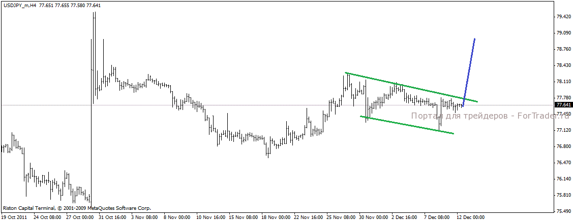 Пара движется под верхней границе канала, общупывая ее слабые места для того чтобы пробиться и иначать расти. Возможно уже сегодня эти поиски увенчаются успехом и пара мощно выстрелит вверх, в противном случае нас ожидает медленное сползание вдоль линии канала вниз, которое может перейти в нисходящее движение.