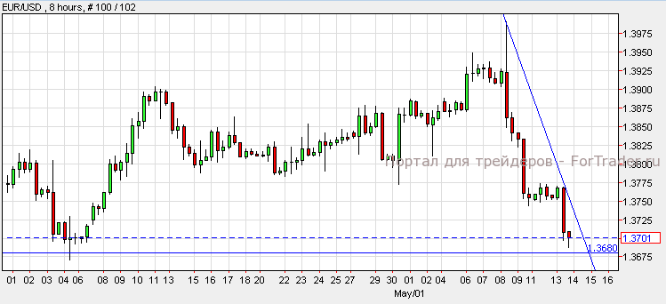 Евро снизился против доллара и закрылся на отметке 1.3703, поскольку индекс настроений в деловых кругах от ZEW вышел хуже ожиданий. Согласно техническому анализу 8-часового графика, пара EUR/USD торгуется с нисходящим импульсом к уровню сопротивления 1.3680. Если пара опустится ниже уровня сопротивления, она может упасть к отметке 1.3600, в противном случае пара достигнет уровня 1.3900.