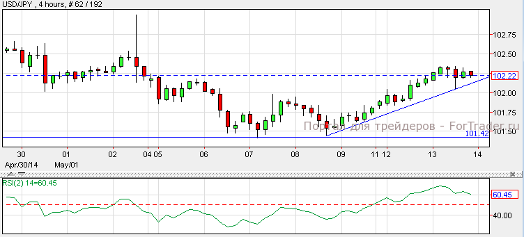 Йена укрепилась против доллара и закрыла торги на отметке 102.27. Согласно техническому анализу 4-часового графика, пара USD/JPY торгуется с восходящим импульсом и поддерживается индикатором относительной силы. При задержке на этом уровне пара вырастет к отметке 103.00, однако при падении ниже уровня поддержки 101.40, пара коснется отметки 100.00. Предварительный ВВП составит 1.0% против 0.2%, a индекс активности в сфере услуг составит 2.5% против -1.0% ранее.