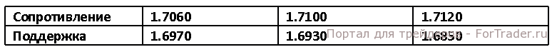 Фунт снизился, не сумев пробить максимум на отметке 1.7060, так как чистые займы гос. сектора (Public Sector Net Borrowing) вышли ниже прогнозов. Уровень 1.7060 оказался сильным уровнем сопротивления для пары GBP/USD. В случае пробоя данного уровня, пара может вырасти к отметке 1.7100, а пребывание на данном уровне может привести пару к отметке 1.6930. Сегодня ожидается выход отчета Банка Англии об условиях кредитования (BOE Credit Conditions Survey).
