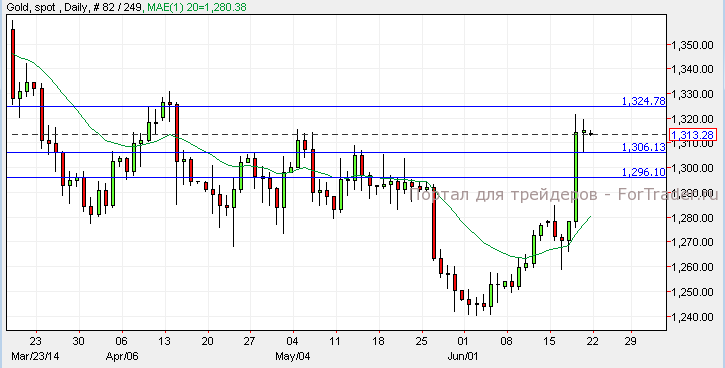 Золото завершило торги вблизи прежней отметки после огромного скачка на прошлой неделе. Золото начало сессию нисходящим импульсом, а уровень $ 1306 стал следующей поддержкой. Падение ниже уровня поддержки может вернуть золото к отметке $ 1296, а пребывание на данном уровне способно подтолкнуть золото вверх, к отметке $ 1325.