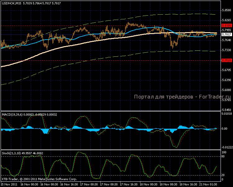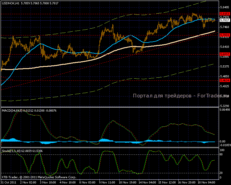 На прошлой неделе норвежская крона еще немного сдала позиции по отношению к американскому доллару, 17 ноября торги дошли к новой отметке 5,8150, сегодняшняя азиатская сессия держится около уровня 5,7800.
