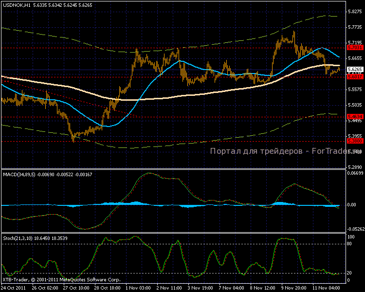 Пятничные торги по валютной паре USD/NOK не поддержали восходящую тенденцию, уровень 5,7000 вновь стал сопротивлением. Торги на азиатской сессии стартовали по 5,6061 и продолжают медленное восхождение вверх.