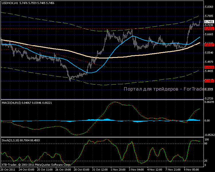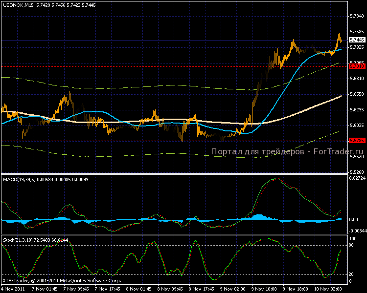 Торги по норвежской кроне приобретают направленный характер, на вчерашней торговой сессии был пробит сильный уровень сопротивления на отметке 5,7000. На азиатской сессии прошло закрепление, и после непродолжительной консолидации движение продолжилось.