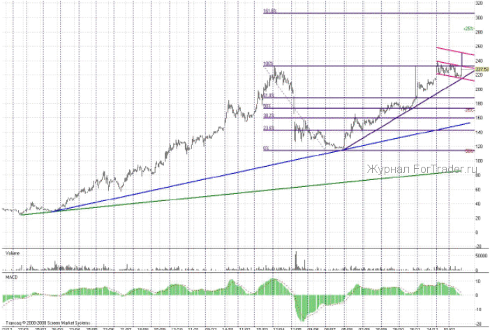 Возможно, формат этой картинки не поддерживается браузером. А в целом, оставшуюся часть утра я посвящу обзору бумаг, о которых меня спрашивали трейдеры во время онлайн-семинара. Вчера я представила свое виденье обыкновенных акций «Ростелекома» и сравнительно небольших металлургических компаний. Сегодня на повестке дня еще много акций. Но начну с бумаг «Распадская», о которых подзабыла в последнее время. Посмотрев на график эмитента, я сразу догадалась, что встревожило биржевиков – вчера бумаги первый день росли на заметно возросшем объеме торгов. Вот так у нас часто бывает — когда бумаги на днях ходили к линии поддержки восходящего сентябрьского канала 217-215 рублей, их никто не замечал, а как только появились первые ростки роста — трейдеры засуетились. Отчасти такой подход правилен – не стоит покупать слабые бумаги, но и поиском сильных бумаг тоже не стоит слишком увлекаться. Не затяните вы меня в акции «Разгуляй» после скоростного роста на 50% и не буду я тратить время на обзор акций «Седьмой континент». Вернемся к бумагам «Распадская». Если общее настроение на рынке не помешает им преодолеть сопротивление 233 рубля (нисходящий тренд от 12 января 2011 года), то следующим сопротивлением для них станут отметки 240 и 250 рублей. Цели не великие, но вполне устроят тех, кто умеет правильно распределять доли портфеля и не боится спекулировать бумагами «второго эшелона».