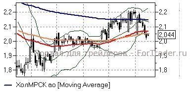 Холдинг МРСК (+0,94%) – акции по итогам вчерашнего дня закрепились ниже последних «долгих» скользящих средних дневного графика (2,05-2,06 руб), к которым пытаются совершить отскок сегодня. Технические индикаторы при этом дают негативные сигналы и указывают на наличие у бумаг потенциала падения до входа в зону перепроданности. Даже в случае способности котировок закрепиться выше указанных значений потенциал их роста вполне может ограничиться отметками 2,11-2,14 руб (средняя полоса Боллинжера и линия EMA200). К открытию «длинных» позиций стоит относиться с большой осторожностью.