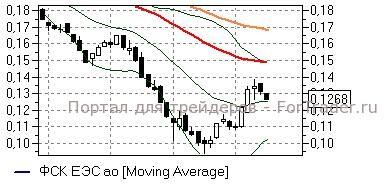 ФСК ЕЭС (-3,23%) – акции корректируются с достигнутых ранее вершин, стремясь к средней полосе Боллинжера дневного графика (0,125 руб), а технические индикаторы в целом не исключают продолжения нисходящего движения. Однако до закрепления ниже указанной отметки снижение носит коррекционный характер, а бумаги имеют все шансы впоследствии продолжить попытки движения к линии EMA55 (0,149 руб).