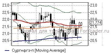 Сургутнефтегаз ап (+0,1%) – акции располагаются выше всех важных линий дневного графика (ближайшие в районе 21,4-21,55 руб), до пробития которых сохраняют предрасположенность к развитию роста как минимум к вершинам апреля (22,3 руб). Разворотным сигналом служило бы закрепление бумаг ниже 21,4 руб – в этом случае можно ожидать движения в район линии EMA200 (20,75 руб).