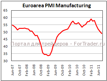 Окончательные производственные данные PMI по еврозоне были пересмотрены в сторону понижения по сравнению с предварительным чтением, с 49.7 до 49.0. Пересмотр в сторону понижения Германии и Италии выдающийся, немецкие экспортные заказы сейчас на самом низком уровне в еврозоне. Это происходит на фоне утренней раскладки ВВП за второй квартал, который показал, что суммарный экспорт отнял 0.3% от общего роста. Это тревожные события, учитывая, что немецкий экспортный сектор был одним из немногих светлых пятен экономики еврозоны во время фазы восстановления.