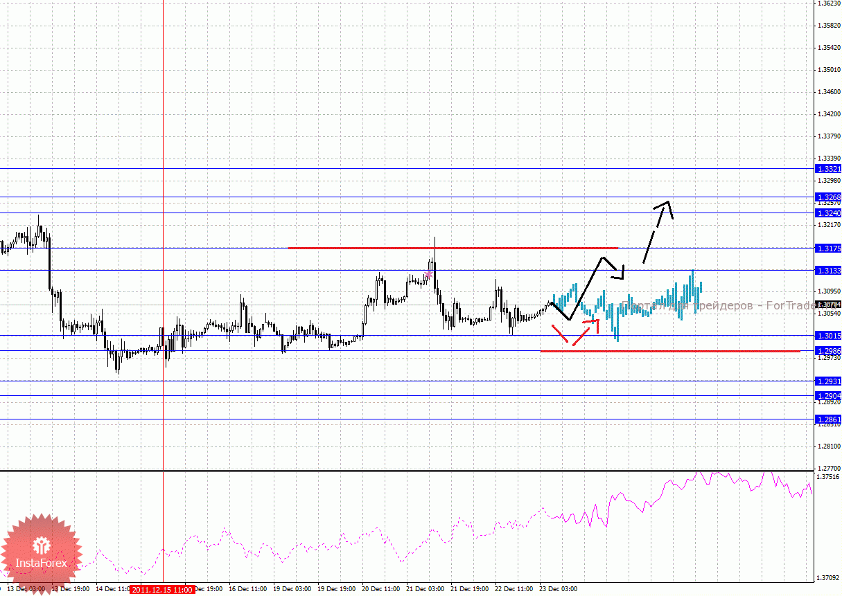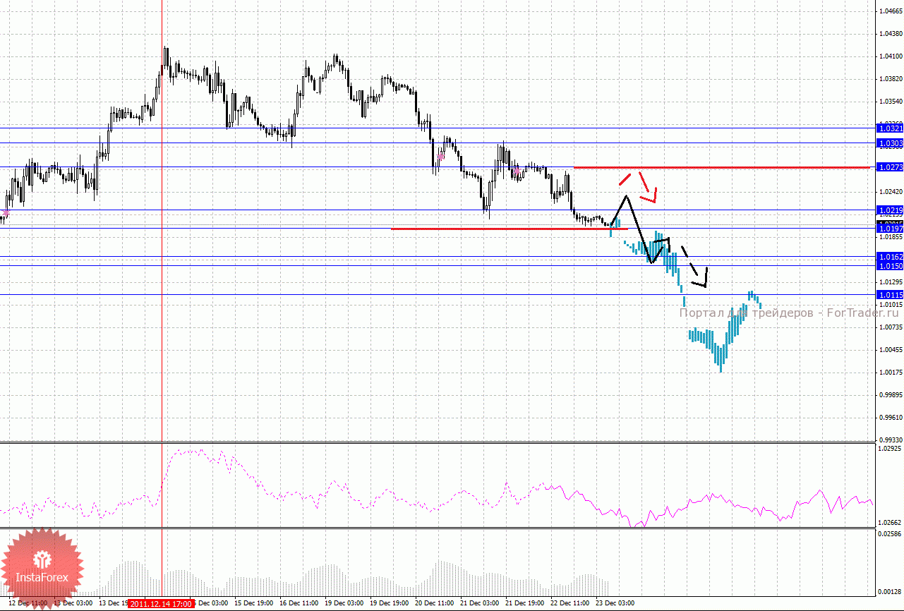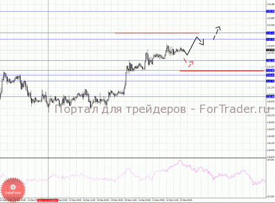 По паре Доллар/Франк ключевым уровня являются: 0.9549, 0.9504, 0.9480, 0.9428, 0.9389, 0.9317, 0.9289, 0.9260, 0.9211 и 0.9172. Здесь мы наблюдаем формирование восходящего потенциала от 21 декабря, что в свою очередь может изменить ситуацию по паре Евро/Доллар. Краткосрочное движение кверху ожидаем в диапазоне 0.9389 – 0.9428, пробой последнего значения должен сопровождаться импульсивным движением к уровню 0.9480, в коридоре 0.9480 – 0.9504 консолидация цены. Потенциальным значением для верха считаем уровень 0.9549, по достижении которого, ожидаем откат книзу. Корректировочное нисходящее движение возможно в коридоре 0.9317 – 0.9289, пробой последнего значения окажет негативное влияние на развитие восходящей структуры от 21 декабря, здесь цель 0.9260, пробой которого, в свою очередь, продолжит нисходящее движение от 15 декабря, в данном случае первая цель 0.9211.