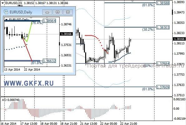Пара EURUSD не смогла преодолеть уровень 1,3790 и закрыла день выше 1,3800. Это указывает на то, что красный сценарий на эту неделю отпадает. Цена начинает двигаться в сторону зеленного сценария и вчера сформировалась бычья формация. Сделка по рекомендации исполнилась, но рекомендую закрыть по рынку, ситуация поменялась. На эту неделю традиционно рассматриваю два варианта возможного движения цены, основной красный и альтернативный зеленый. Значимые уровни на сегодня отмечены на часовом графике. Индикатор АО находится в положительной зоне и растет, указывая на желание пары двигаться вверх в данное время. Индикатор тренда указывает на рост. Преодоление 1,3815 позволит купить с целями 1,3830, 1,3845 и 1,3855.