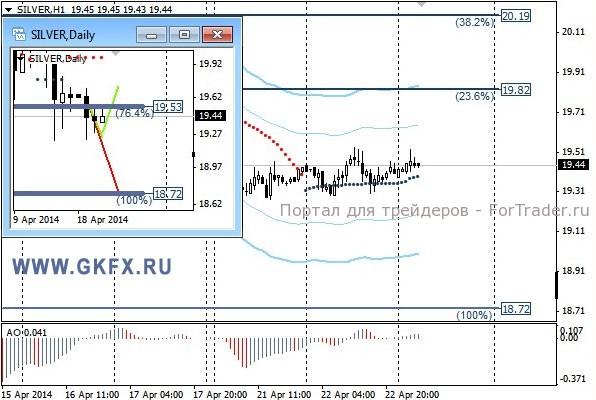Цены на серебро простояли весь день в узком диапазоне, не исполнив сделку по рекомендации. Сделка все еще актуальна, ожидаю снижения цен на серебро, поэтому оставляю как есть. Традиционно делаю два варианта движения цены на неделю, основной красный и альтернативный зеленый. Значимые уровни на сегодня отмечены на часовом графике. Индикатор АО находится в нейтральной зоне, указывая на неопределенность. Индикатор тренда указывает на рост. Преодоление 19,20 позволит продать с целями 19,00, 18,70 и 18,00.