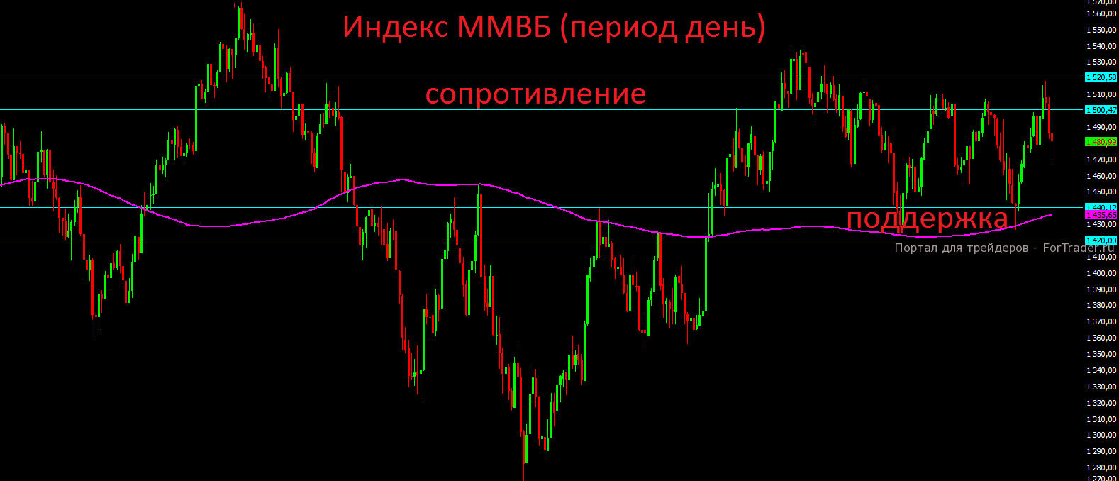С технической точки зрения по российскому индексу ММВБ мы продолжаем наблюдать реализацию негативного сценария. Пока, первые цели коррекции находятся в диапазоне 1420-1440 пунктов. В случае пробоя этого диапазона поддержки явно стоит ожидать более существенное падение. На ближайшие 5 торговых сессий этот диапазон будет выступать ключевой поддержкой. В случае локального отскока в пределах 1-1.5% рекомендуем открывать короткие позиции по российским акциям и индексам. Сильнейший уровень сопротивления на ближайшие 5 торговых сессий – это диапазон 1500-1520 пунктов. Сегодня внешний фон для российского фондового рынка складывается позитивный. Японцы конечно поражают своим оптимизмом и своей эйфорией, экономика у них летит в пропасть, но на фоне очередных обещаний фондовый индекс NIKKEI 225 прибавляет почти 3%. В Китае наоборот, ситуация противоположная, индекс Shanghai Comp. теряет около 1%. Мы ожидаем увидеть на открытии рост по российским индексам в пределах 0.7%. В течение дня рост может усилиться, индекс ММВБ может вновь подойти к отметке 1500 пунктов, откуда начнётся очередная фиксация.