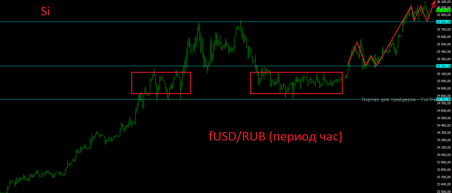 Российский рубль вчера поддержали уплаты НДС, поэтому он смотрелся более менее стабильно. В среднесрочной перспективе ждём дальнейшего плавного ослабления до отметок 36.5-37 в паре с долларом. Фьючерс на валютную пару доллар-рубль продолжает очень чётко отрабатывать все уровни и техническая картина пока продолжает говорить за дальнейший рост. Ключевая поддержка по данному инструменту находится на отметке 35800, которая уже дважды тестировалась на прочность в четверг. В случае пробоя отметки 36000 и закрытия дня выше этой отметки, следующей целью станет уровень 36500.