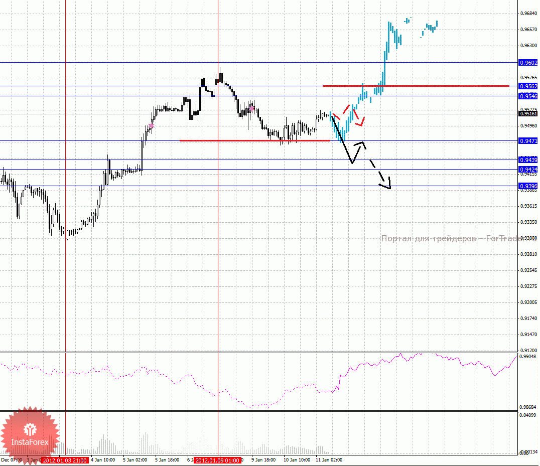 По паре Доллар/Франк ключевым уровня являются: 0.9602, 0.9562, 0.9546, 0.9471, 0.9439, 0.9424 и 0.9396. Здесь мы следим за формированием начальных условий для нисходящего движения от 9 января. Продолжения движения книзу ожидаем после пробоя 0.9471, в данном случае цель 0.9439. В коридоре 0.9439 – 0.9424 консолидация цены. Потенциальным значением для низа считаем уровень 0.9396, по достижении которого ожидаем консолидацию. Диапазон 0.9546 – 0.9562 является ключевой поддержкой для нисходящей структуры от 9 января, его проход ценой будет располагать к формированию восходящей тенденции, здесь потенциальная цель 0.9602.
