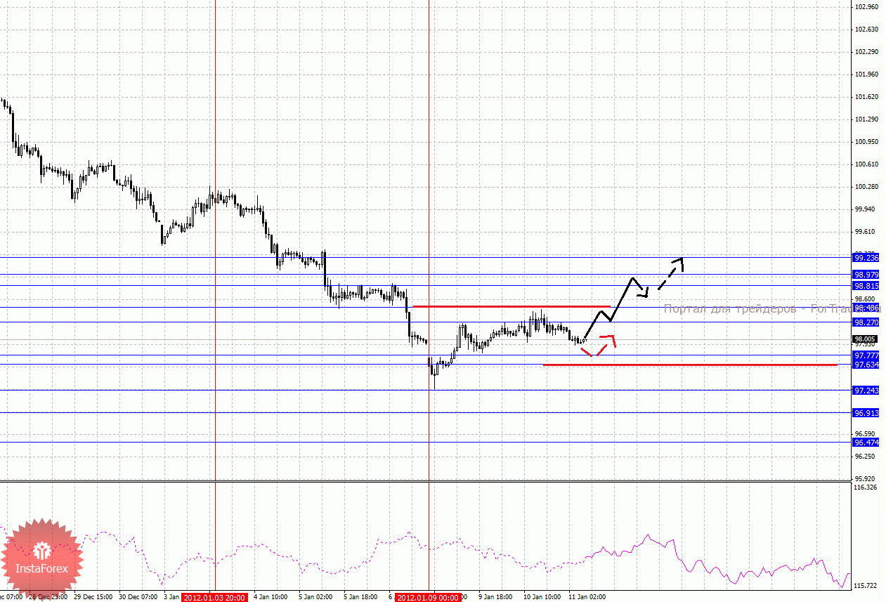 По паре Евро/Йена ключевыми уровнями являются: 99.23, 98.97, 98.81, 98.48, 98.27, 97.77, 97.63, 97.24, 96.91 и 96.47. Здесь ключевые цели остались без изменения и мы продолжаем следить за восходящей структурой от 9 января. Краткосрочное движение кверху ожидаем в диапазоне 98.27 – 98.48, пробой последнего значения должен сопровождаться импульсивным движением к уровню 98.81, в коридоре 98.81 – 98.97 консолидация цены. Потенциальным значением для верха считаем уровень 99.23, по достижении которого ожидаем откат книзу. Диапазон 97.77 – 97.63 является ключевой поддержкой для верха, его пробой отменит развитие восходящей структуры от 9 января, в данном случае первая цель 97.24. Потенциальным значением для низа считаем уровень 96.47, движение к которому ожидаем после пробоя 96.91.