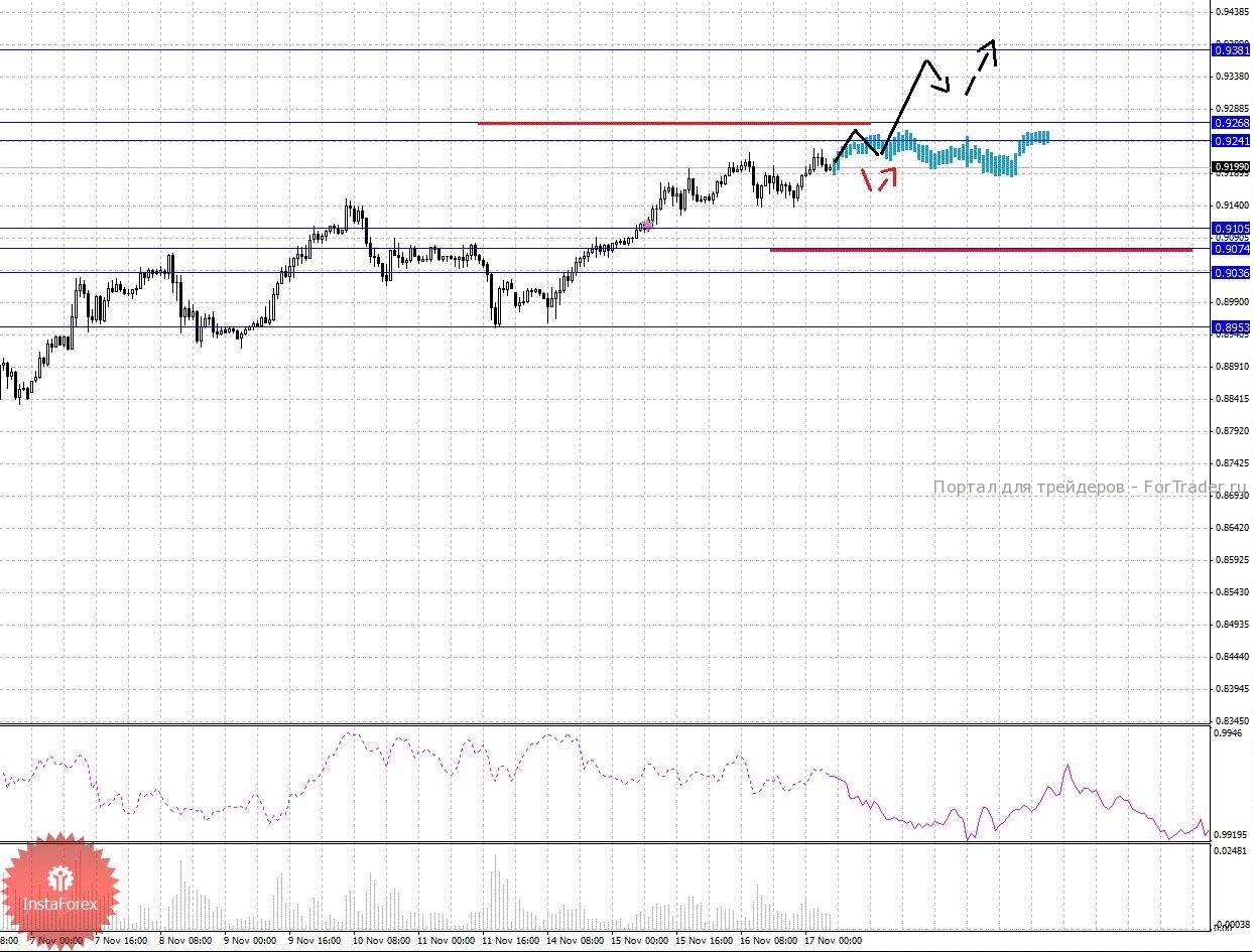 По паре Доллар/Канадский доллар ключевыми уровнями являются: 1.0365, 1.0337, 1.0323, 1.0269, 1.0182, 1.0149, 1.0077 и 1.0061. Канадец пока не взял основное сопротивление lzk верха (1.0269). Продолжения движения к верху, ожидаем после пробоя 1.0269, в данном случае цель 1.0323, в коридоре 1.0323 – 1.0337 консолидация цены. Потенциальным значением для верха, считаем уровень 1.0365, по достижении которого, ожидаем откат к низу. Корректировочное нисходящее движение, возможно в диапазоне 1.0182 – 1.0149, пробой последнего значения отменит развитие восходящей структуры от 11 ноября, в данном случае цель 1.0077. Диапазон 1.0077 – 1.0061 шумовой, он также является ключевой поддержкой для среднесрочной восходящей структуры от 27 октября.