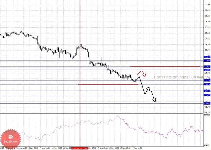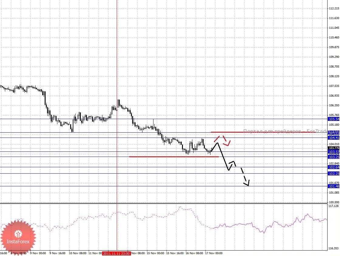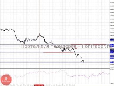 По паре Евро/Йена ключевыми уровнями являются: 105.54, 104.73, 104.41, 103.57, 103.25, 102.64, 102.25 и 101.48. Здесь мы следим за развитием нисходящей структуры от 11 ноября. Продолжения движения к низу, ожидаем после прохода ценой шумового диапазона 103.57 – 103.25, в данном случае цель 102.64, в коридоре 102.64 – 102.25 консолидация цены. Потенциальным значением для низа, считаем уровень 101.48, движение к которому, ожидаем после пробоя 102.25. Диапазон 104.41 – 104.73 является ключевой поддержкой для нисходящей структуры, в нем мы ожидаем краткосрочное восходящее движение. Пробой уровня 104.73 будет располагать к формированию начальных условий для верха, здесь потенциальная цель 105.54.
