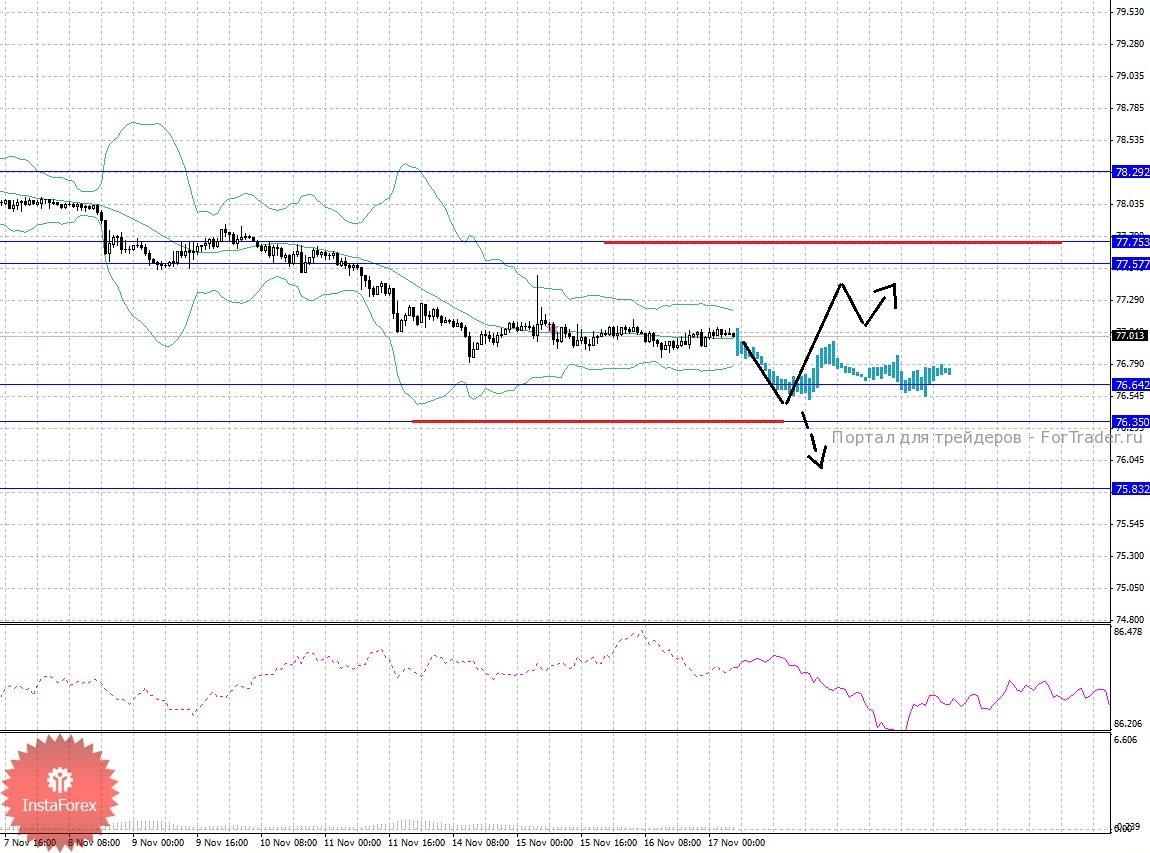 По паре Доллар/Йена ключевыми уровнями являются: 78.29, 77.75, 77.57, 76.64, 76.35 и 75.83. Здесь потенциальной целью для низа, на текущий момент, является уровень 76.64, по достижении которого, ожидаем краткосрочное нисходящее движение в диапазоне 76.64 – 76.35. Пробой уровня 76.35, после консолидации в коридоре, должен сопровождаться выраженным нисходящим движением к уровню 75.83, по достижении которого, ожидаем откат к верху. Диапазон 77.57 – 77.75 является ключевой поддержкой для нисходящей структуры, его проход ценой будет располагать к развитию верха, в данном случае потенциальная цель 78.29, до этого уровня мы ожидаем оформления начальных условий.