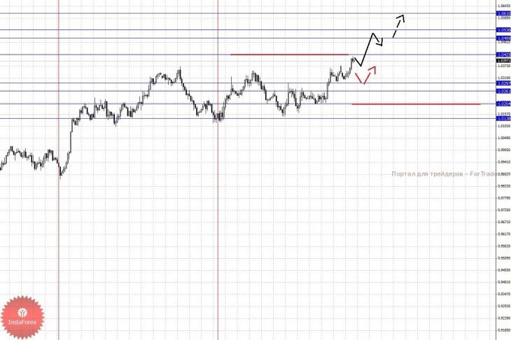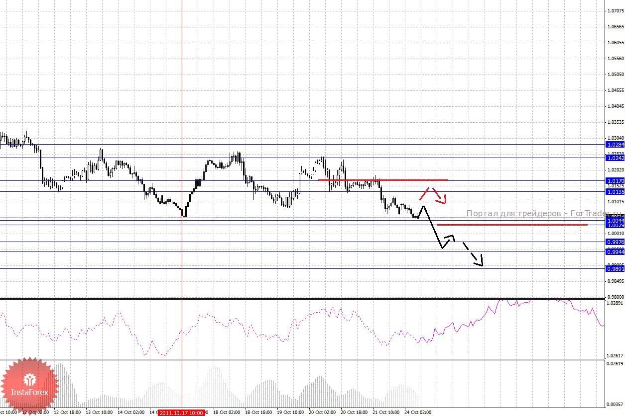 По паре Австралийский доллар/Доллар ключевыми уровнями являются: 1.0610, 1.0536, 1.0499, 1.0425, 1.0297, 1.0261, 1.0204 и 1.0138. Здесь мы рассматриваем локальную восходящую структуру от 18 октября. Продолжения движения к верху, ожидаем после пробоя 1.0425, в данном случае цель 1.0499, в коридоре 1.0499 – 1.0536 консолидация цены. Потенциальным значением для верха, считаем уровень 1.0610, по достижении которого, ожидаем откат к низу. Корректировочное нисходящее движение, возможно в диапазоне 1.0297 – 1.0261, пробой последнего значения приведет к углубленной коррекции, здесь цель 1.0204, этот уровень является ключевой поддержкой для восходящей тенденции в масштабе Н1, его пробой будет располагать к формированию нисходящей структуры, здесь первая цель 1.0138.