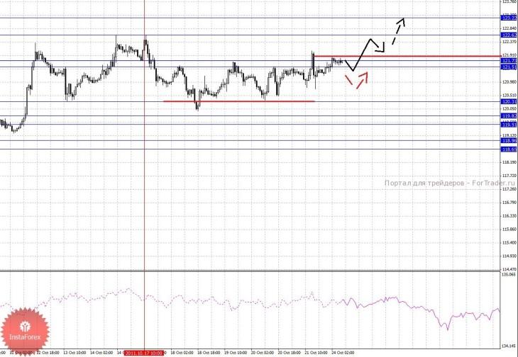 По паре Евро/Доллар следим за развитием восходящей структуры от 18 октября. По паре Доллар/Франк продолжаем следить за локальной нисходящей структурой от 20 октября. По паре Фунт/Доллар восходящая тенденция остается основной. По паре Доллар/Йена цена вышла из горизонтального коридора и здесь мы следим за нисходящей структурой от 17 октября. По паре Евро/Йена ключевые уровни остались без изменения. По паре Фунт/Йена цена близка к тому, чтобы отменить развитие нисходящей структуры от 17 октября, чего мы ожидаем после прохода уровня 121.90.