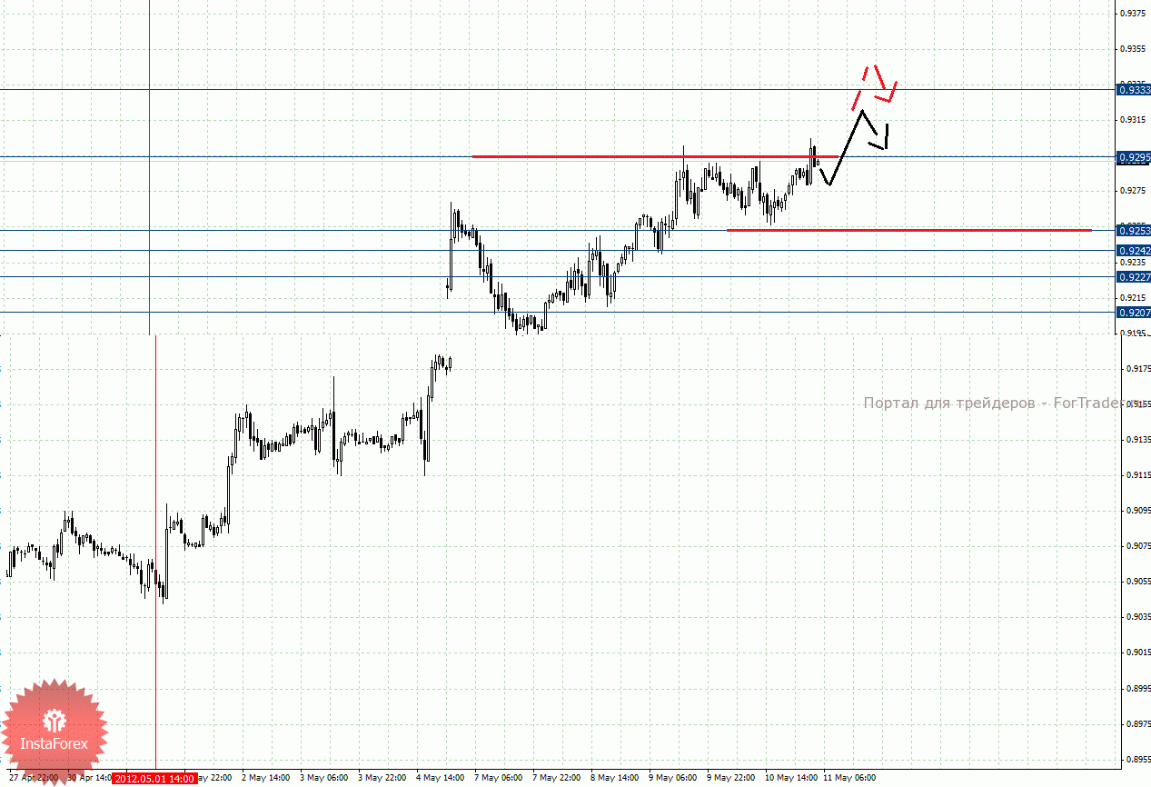 По паре Доллар/Франк ключевым уровня являются: 0.9333, 0.9295, 0.9253, 0.9242, 0.9227 и 0.9207. Здесь продолжения движения кверху ожидаем после пробоя 0.9295, в данном случае потенциальная цель 0.9333, по достижении этого уровня ожидаем откат книзу. Краткосрочное нисходящее движение возможно в коридоре 0.9253 – 0.9242, пробой последнего значения приведет к углубленной коррекции, в данном случае цель 0.9227, от этого уровня существует вероятность разворота кверху, его пробой будет располагать к развитию нисходящей структуры, в данном случае потенциальная цель 0.9207.