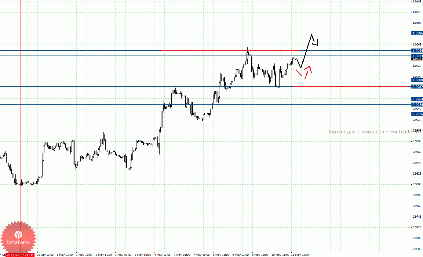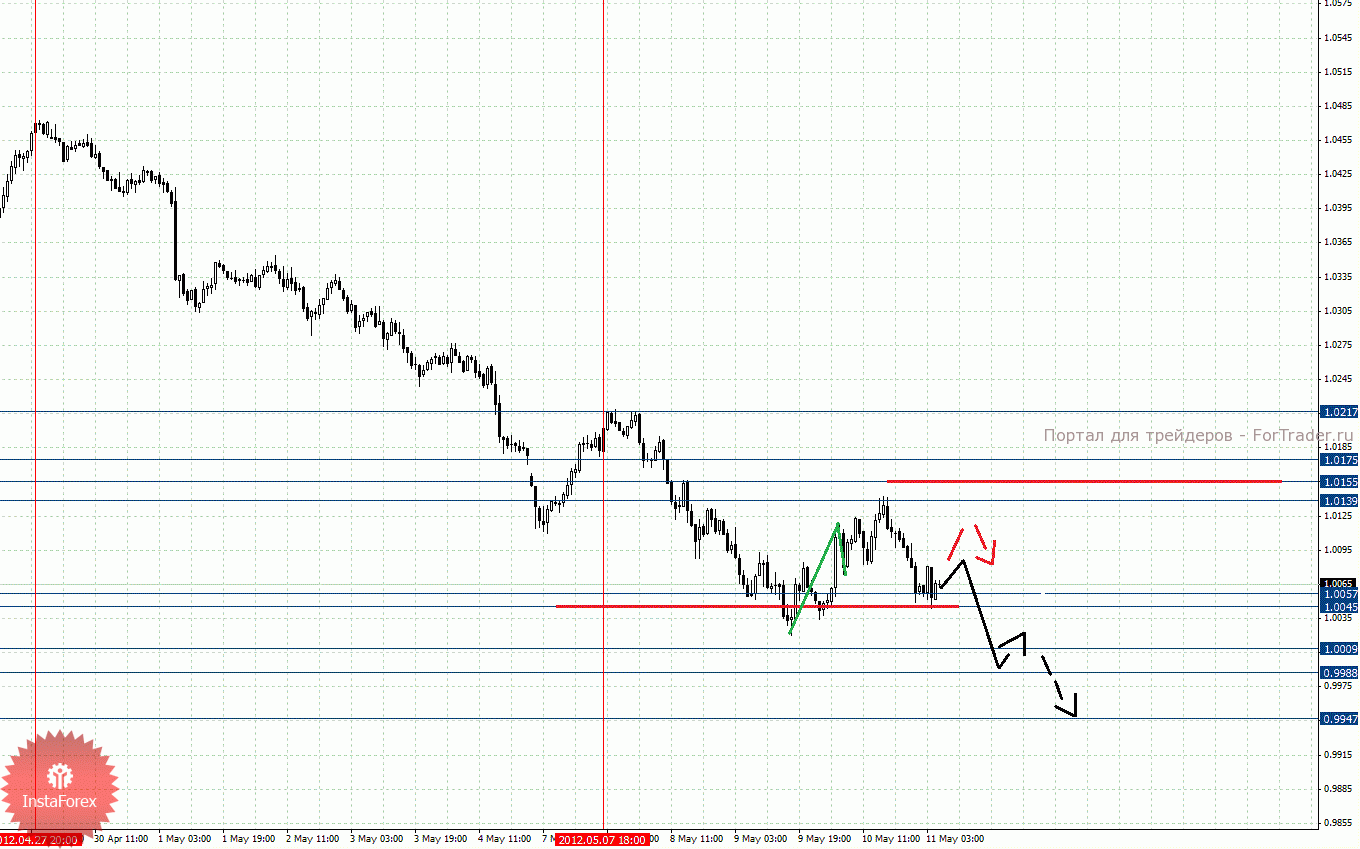 По паре Австралийский доллар/Доллар ключевыми уровнями являются: 1.0217, 1.0175, 1.0155, 1.0139, 1.0057, 1.0045, 1.0009, 0.9988 и 0.9947. Здесь цена близка к отмене потенциальной восходящей структуры от 9 мая. Продолжения движения книзу ожидаем после прохода ценой шумового диапазона 1.0057 – 1.0045, в данном случае цель 1.0009, в коридоре 1.0009 – 0.9988 консолидация цены. Потенциальным значением для низа считаем уровень 0.9947, по достижении которого ожидаем откат кверху. Корректировочное восходящее движение возможно в коридоре 1.0139 – 1.0155, пробой последнего значения приведет к углубленной коррекции, в данном случае цель 1.0175, от этого уровня высока вероятность разворота книзу, его пробой будет располагать к развитию восходящей структуры, в данном случае потенциальная цель 1.0217.