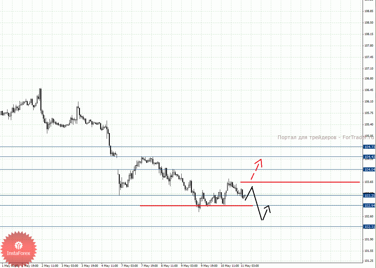 По паре Евро/Йена ключевыми уровнями являются: 104.73, 104.43, 104.04, 103.25, 102.94, 102.31 и 101.00. Здесь краткосрочное нисходящее движение ожидаем в коридоре 103.25 – 102.94, пробой последнего значения позволит рассчитывать на движение к 102.31, по достижении этого уровня мы ожидаем откат кверху, его пробой будет сопровождаться неустойчивым движением книзу, в данном случае потенциальная цель 101.00. Уровень 104.04 является ключевым сопротивлением для верха, его пробой приведет к движению до 104.43. Потенциальным значением для верха считаем уровень 104.73, до которого ожидаем оформления начальных условий.