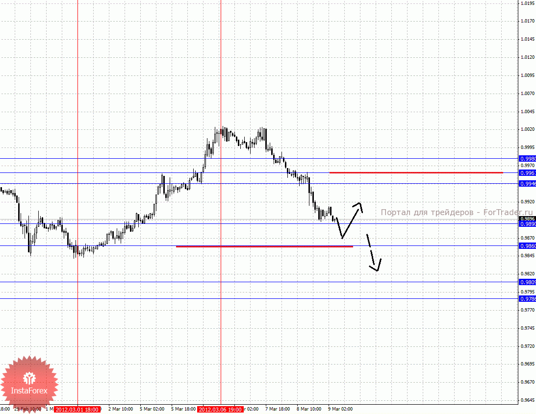 По паре Доллар/Канадский доллар ключевыми уровнями являются: 0.9980, 0.9961, 0.9946, 0.9890, 0.9860, 0.9809 и 0.9786. Здесь мы следим за развитием нисходящей структуры от 6 марта. Краткосрочное движение книзу ожидаем после пробоя 0.9890, в данном случае цель 0.9860, в этом диапазоне консолидация цены. Пробой уровня 0.9860 должен сопровождаться импульсивным движением к уровню 0.9809. Потенциальным значением для низа считаем уровень 0.9786, по достижении которого ожидаем консолидированное движение в коридоре 0.9860 – 0.9890. Корректировочное восходящее движение возможно в диапазоне 0.9946 – 0.9961, пробой последнего значения приведет к углубленной коррекции, в данном случае потенциальная цель – 0.9980.