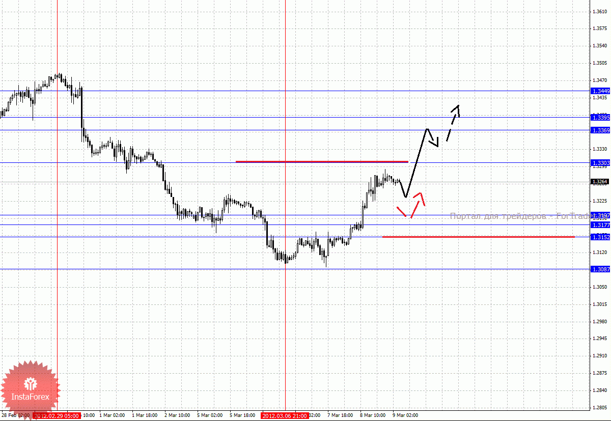 По паре Евро/Доллар важными уровнями являются: 1.3449, 1.3395, 1.3369, 1.3303, 1.3197, 1.3177, 1.3152 и 1.3087. Здесь мы следим за формированием начальных условий для восходящего цикла от 6 марта. Продолжения движения кверху ожидаем после пробоя 1.3303, в данном случае цель 1.3369, в коридоре 1.3369 – 1.3395 консолидация цены. Потенциальным значением для верха считаем уровень 1.3449, по достижении которого ожидаем откат книзу. Корректировочное нисходящее движение возможно в коридоре 1.3197 – 1.3177, пробой последнего значения приведет к углубленной коррекции, здесь цель 1.3152, от этого уровня высока вероятность разворота кверху, его пробой будет располагать к развитию нисходящей структуры, в данном случае потенциальная цель – 1.3087.