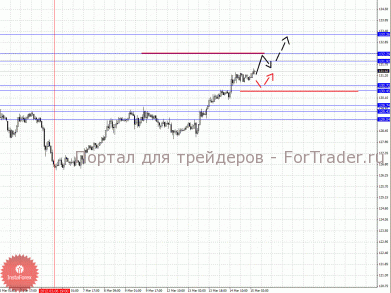 По паре Доллар/Йена ключевыми уровнями являются: 85.22, 84.54, 84.42, 84.19, 83.30, 83.05, 82.76 и 82.09. Здесь для последующих восходящих целей мы рассмотрели локальный восходящий цикл от 23 февраля. Продолжения движения кверху ожидаем после пробоя 84.19, в данном случае цель 84.42, в этом диапазоне консолидация цены. Проход ценой шумового диапазона 84.42 – 84.54 должен сопровождаться выраженным восходящим движением к потенциальной цели – 85.22, от этого уровня ожидаем откат книзу. Корректировочное нисходящее движение возможно в коридоре 83.30 – 83.05, пробой последнего значения приведет к углубленной коррекции, здесь цель 82.76, от этого уровня высока вероятность разворота кверху, его пробой будет располагать к развитию нисходящей структуры, в данном случае потенциальная цель 82.09.