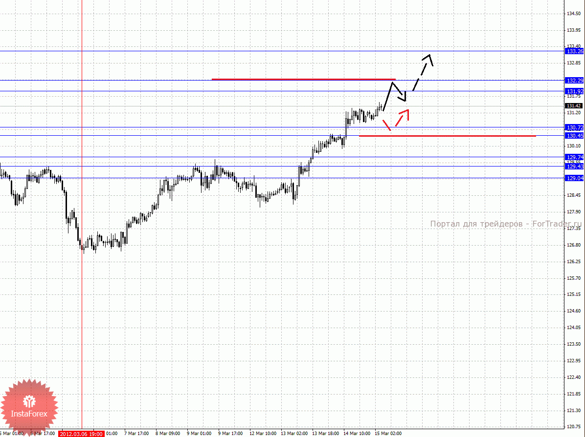 По паре Доллар/Франк ключевым уровня являются: 0.9421, 0.9373, 0.9350, 0.9280, 0.9263, 0.9240 и 0.9190. Здесь мы продолжаем следить за восходящей структурой от 8 марта. Краткосрочное движение кверху ожидаем в коридоре 0.9350 – 0.9373, пробой последнего значения позволит рассчитывать на движение к потенциальной цели – 0.9421, от которого мы ожидаем откат книзу. Корректировочное нисходящее движение возможно в коридоре 0.9280 – 0.9263, пробой последнего значения приведет к углубленной коррекции, здесь цель 0.9240, этот уровень является ключевой поддержкой для верха, проход его ценной будет располагать к развитию нисходящей структуры, в данном случае потенциальная цель 0.9190.