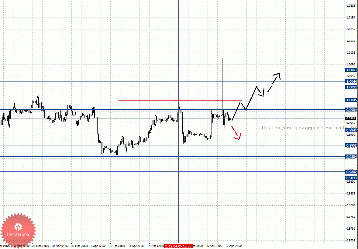 По паре Доллар/Канадский доллар ключевыми уровнями являются: 1.0069, 1.0044, 1.0032, 1.0005, 0.9984, 0.9940, 0.9908, 0.9884, 0.9852 и 0.9838. Здесь краткосрочное восходящее движение ожидаем в коридоре 0.9984 – 1.0005, пробой последнего значения должен сопровождаться импульсивным развитием восходящей структуры, в данном случае цель – 1.0032, в коридоре 1.0032 – 1.0044 консолидация цены. Потенциальным значением для верха считаем уровень – 1.0069, по достижении которого ожидаем откат книзу. Уровень 0.9940 является ключевой поддержкой для восходящей структуры от 5 апреля, его пробой будет располагать к развитию нисходящей тенденции от 5 апреля, в данном случае первая цель 0.9908.
