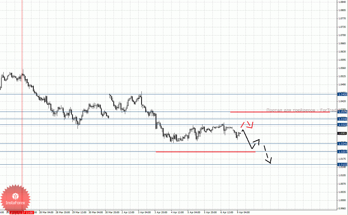 По паре Австралийский доллар/Доллар ключевыми уровнями являются: 1.0450, 1.0376, 1.0345, 1.0322, 1.0241, 1.0207 и 1.0152.Здесь мы продолжаем следить за нисходящей структурой от 27 марта. Краткосрочное нисходящее движение ожидаем в коридоре 1.0241 – 1.0207. Пробой уровня 1.0207 позволит рассчитывать на движение к 1.0152, от данного значения ожидаем откат кверху. Корректировочное восходящее движение возможно в коридоре 1.0322 – 1.0345, пробой последнего значения приведет к углубленной коррекции, здесь цель – 1.0376, от этого уровня высока вероятность разворота книзу, его пробой позволит рассчитывать на движение к потенциальной цели – 1.0450, до которой мы ожидаем оформления начальных условий.