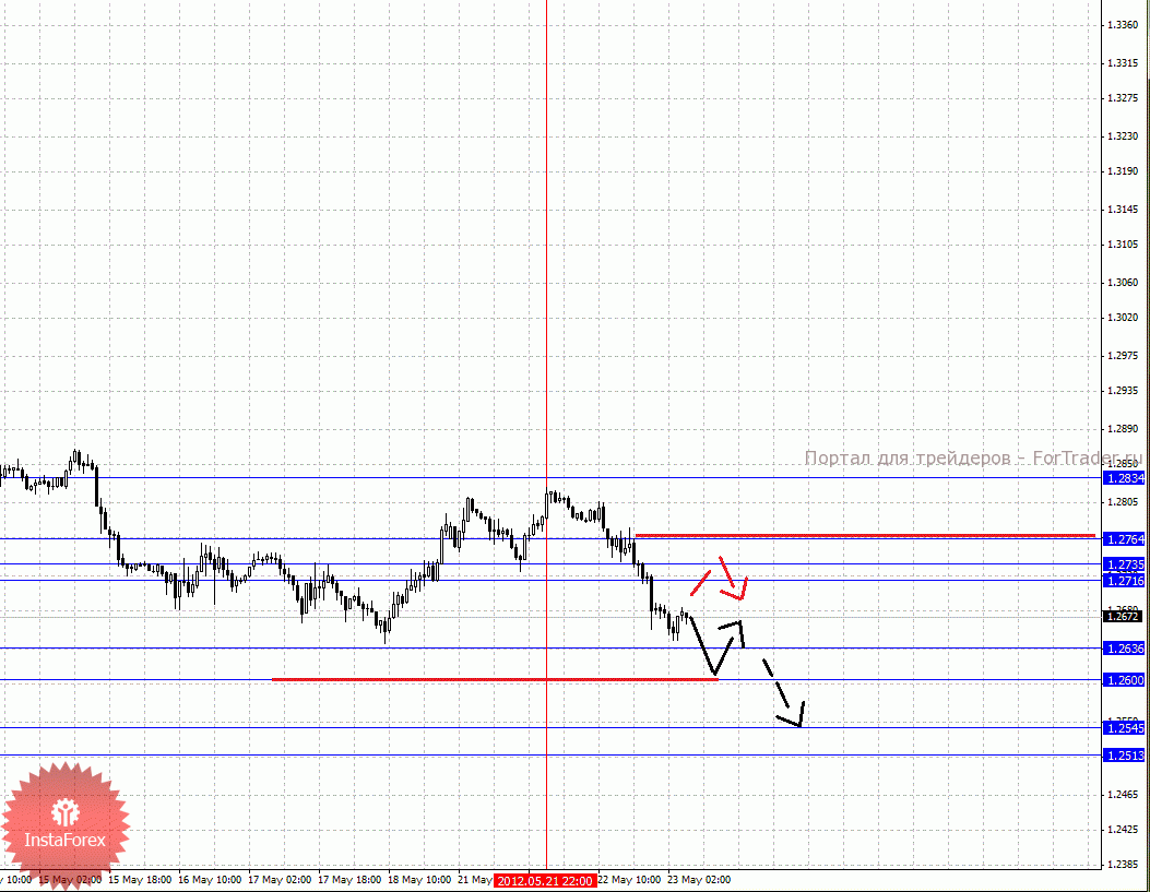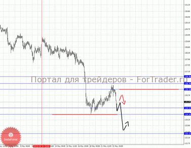 По паре Евро/Доллар важными уровнями являются: 1.2834, 1.2764, 1.2735, 1.2716, 1.2636, 1.2600, 1.2545 и 1.2513. Здесь цена отменила развитие восходящей структуры и на текущий момент мы следим за локальным движением книзу от 21 мая. Краткосрочное нисходящее движение ожидаем в коридоре 1.2636 – 1.2600, пробой последнего значения должен сопровождаться импульсивным нисходящим движением, в данном случае цель 1.2545. Потенциальным значением для низа считаем уровень 1.2513, по достижении которого ожидаем консолидацию в коридоре 1.2545 – 1.2513. Краткосрочное восходящее движение возможно в коридоре 1.2716 – 1.2735, пробой последнего значения приведет к углубленной коррекции, здесь цель – 1.2764, от этого уровня существует вероятность разворота книзу, его пробой будет располагать к развитию восходящей структуры, в данном случае потенциальная цель – 1.2834.