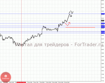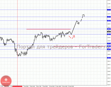 По паре Доллар/Франк ключевым уровня являются: 0.9350, 0.9310, 0.9287, 0.9212, 0.9187, 0.9136 и 0.9117. Здесь мы продолжаем следить за восходящей структурой от 8 марта. Потенциальной целью для верха на текущий момент является уровень 0.9287, по достижении которого ожидаем консолидацию в коридоре 0.9287 – 0.9310. Пробой уровня 0.9310 позволит рассчитывать на движение к 0.9350, от этого уровня ожидаем откат книзу. Краткосрочное нисходящее движение возможно в диапазоне 0.9212 – 0.9187, пробой последнего значения окажет негативное влияние на развитие восходящей структуры в масштабе Н1, в данном случае потенциальная цель 0.9136. Диапазон 0.9136 – 0.9117 шумовой, до него мы ожидаем оформления начальных условий.