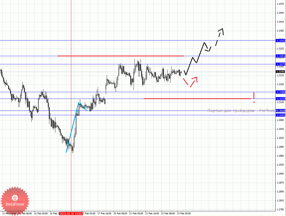 По паре Евро/Доллар важными уровнями являются: 1.3353, 1.3301, 1.3273, 1.3180, 1.3157, 1.3118 и 1.3102. Здесь ключевые цели остались без изменения, необходимо отметить, что пока мы не наблюдаем согласованного развития структуры по основным валютным парам. Краткосрочное восходящее движение, а также консолидацию, ожидаем в коридоре 1.3273 – 1.3301, пробой последнего значения должен сопровождаться выраженным восходящим движением к потенциальной цели – 1.3353, по достижении этого уровня ожидаем откат книзу. Корректировочное нисходящее движение возможно в коридоре 1.3180 – 1.3157, пробой последнего значения окажет негативное влияние на развитие восходящей структуры от 16 февраля, а данном случае потенциальная цель 1.3118. Диапазон 1.3118 – 1.3102 является ключевой поддержкой для верха и интересен с точки зрения среднесрочной перспективы.