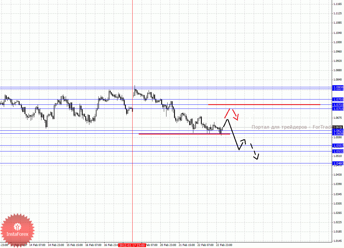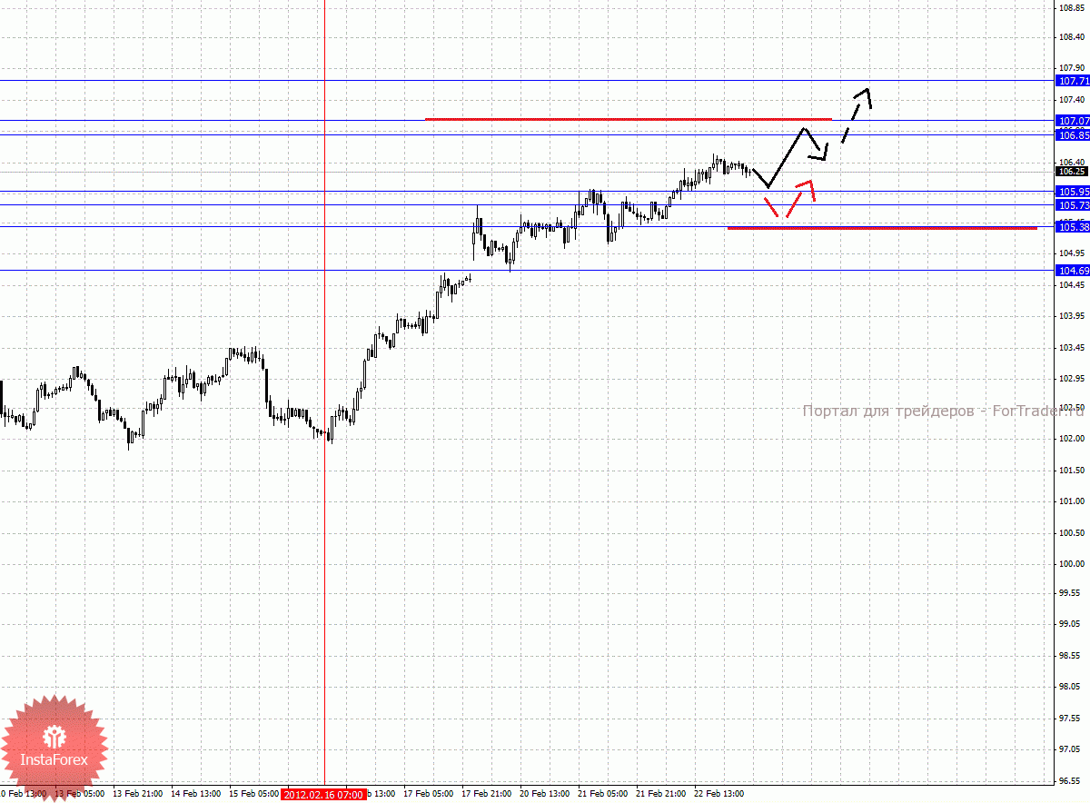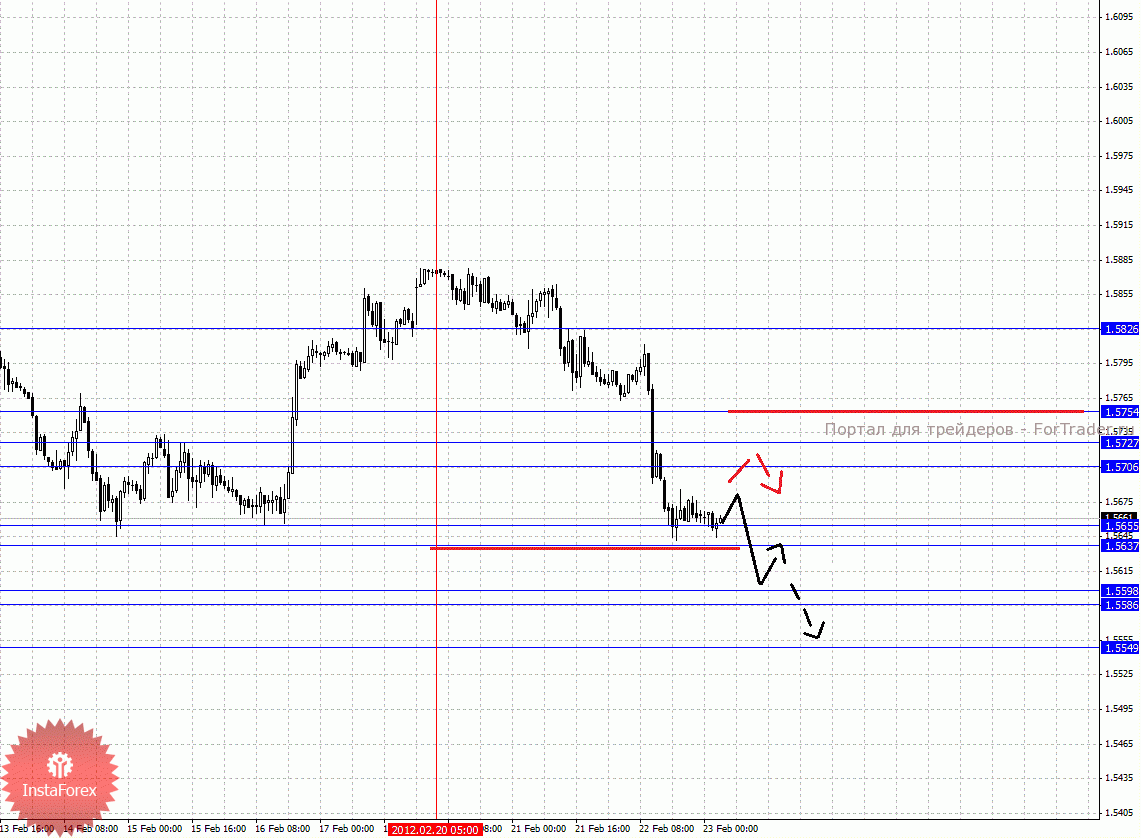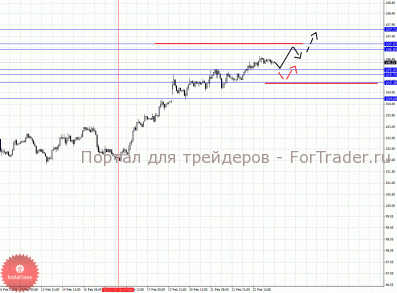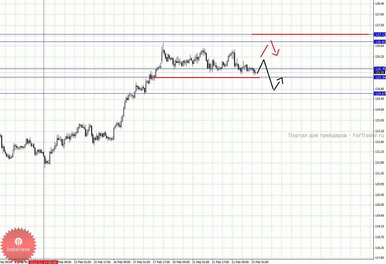 По паре Фунт/Доллар ключевыми уровнями являются: 1.5826, 1.5754, 1.5727, 1.5706, 1.5655, 1.5637, 1.5598, 1.5586 и 1.5549. Здесь продолжение развития нисходящего цикла от 20 февраля ожидаем после прохода ценой шумового диапазона 1.5655 – 1.5637, в данном случае цель 1.5598, в коридоре 1.5598 – 1.5586 консолидация цены. Потенциальным значением для низа считаем уровень 1.5549, по достижении которого ожидаем откат кверху. Корректировочное восходящее движение возможно в диапазоне 1.5706 – 1.5727, пробой последнего значения приведет к углубленному движению, здесь цель 1.5754, от этого уровня высока вероятность разворота книзу, его пробой окажет негативное влияние на последующее развитие нисходящей тенденции в масштабе Н1. Уровень 1.5826 является ключевым сопротивлением для верха и интересен с точки зрения среднесрочной перспективы.
