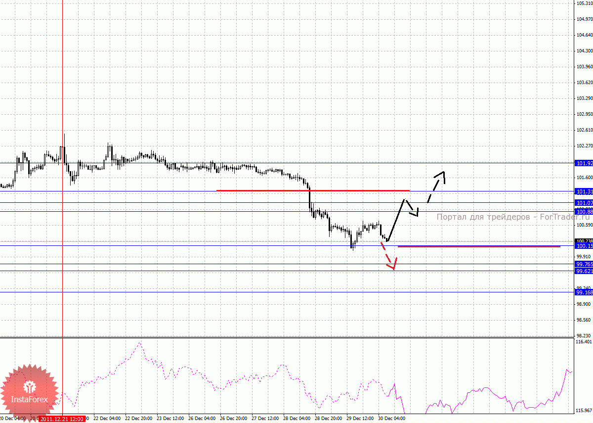 По паре Доллар/Канадский доллар ключевыми уровнями являются: 1.0381, 1.0344, 1.0321, 1.0278, 1.0201, 1.0183, 1.0166 и 1.0122. Здесь ключевые цели остались без изменения, однако ситуация в восходящем направлении от 28 декабря пока не согласовывается с тем, что происходит по паре Евро/Доллар. Продолжения движения кверху ожидаем после пробоя 1.0278, в данном случае цель 1.0321, в коридоре 1.0321 – 1.0344 консолидация цены. Потенциальным значением для верха, считаем уровень 1.0381, по достижении которого, ожидаем откат к низу. Корректировочное нисходящее движение, возможно в коридоре 1.0201 – 1.0183, пробой последнего значения приведет к углубленному движению, здесь цель 1.0166, от этого уровня мы ожидаем разворот к ерху, его пробой будет располагать к развитию нисходящей структуры и здесь первая цель – 1.0122.