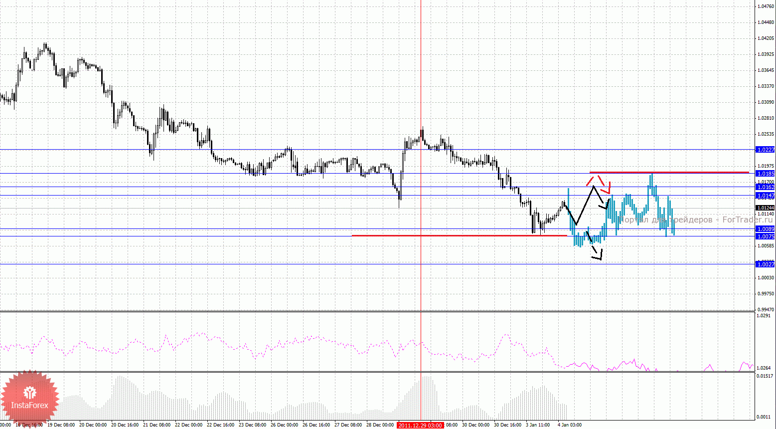 По паре Австралийский доллар/Доллар ключевыми уровнями являются: 1.0432, 1.0384, 1.0324, 1.0309, 1.0286 и 1.0240. Здесь продолжения развития восходящей структуры ожидаем после пробоя 1.0384, в данном случае потенциальная цель – 1.0432. Потенциал для верха ограничен, поскольку цена подошла к своему пределу от локальной структуры 29 декабря и мы ожидаем выполнения коррекции, а также оформления следующих начальных условий для последующего развития структуры от 15 декабря. Корректировочное нисходящее движение возможно в коридоре 1.0324 – 1.0309, пробой последнего значения приведет к углубленному движению, здесь цель 1.0286, от этого уровня высока вероятность разворот кверху, его пробой будет располагать к формированию нисходящей структуры, в данном случае потенциальная цель 1.0240.