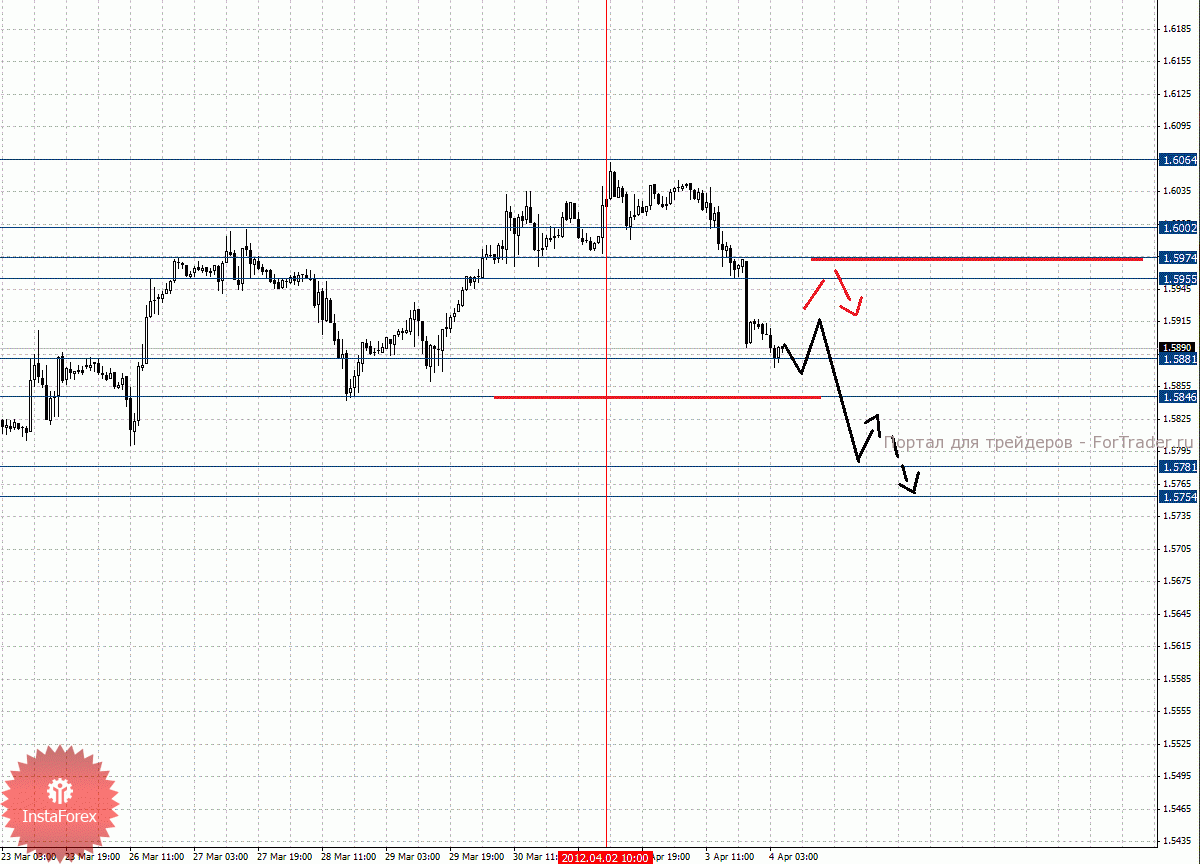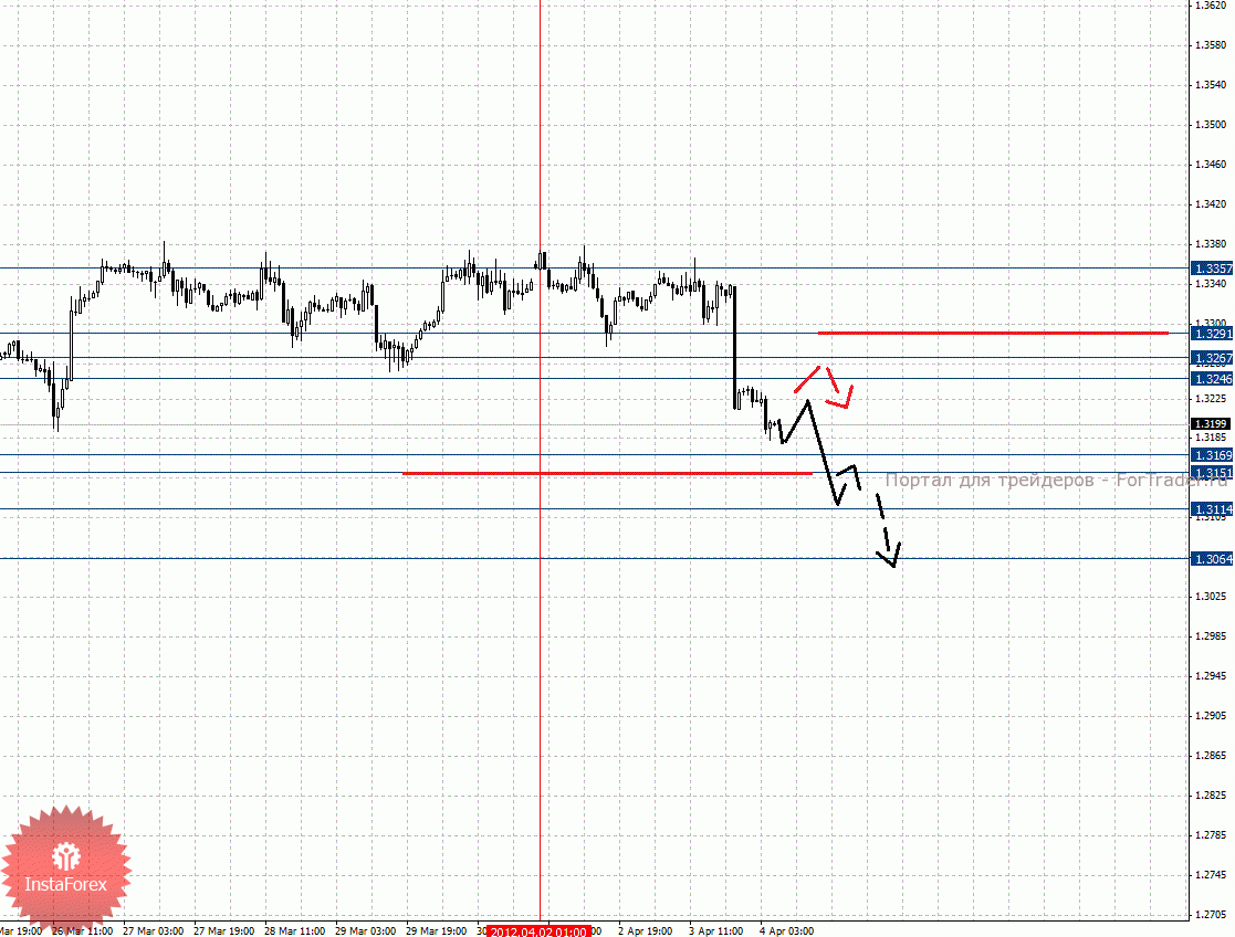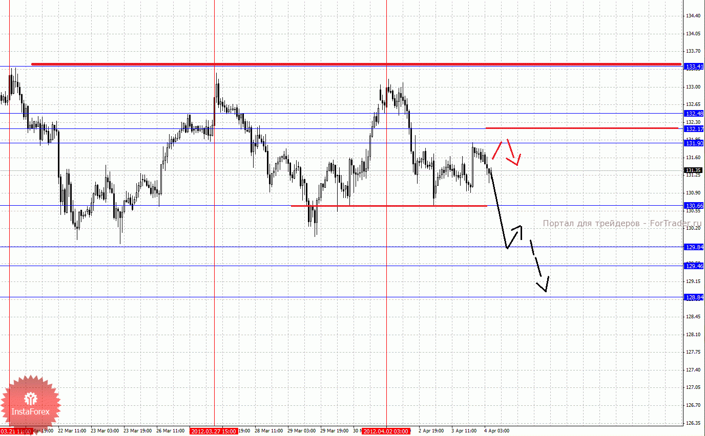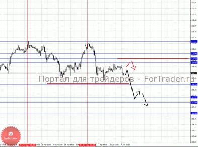 По паре Евро/Доллар важными уровнями являются: 1.3357, 1.3291, 1.3267, 1.3246, 1.3169, 1.3151, 1.3114 и 1.3064. Здесь потенциальной целью для нисходящего движения от 2 апреля, на текущий момент, является уровень 1.3169, по достижении которого, ожидаем консолидированное движение в коридоре 1.3169 – 1.3151. Пробой уровня 1.3151 позволит рассчитывать на последующее движение книзу, в данном случае цель 1.3114, возле этого уровня консолидация цены. Потенциальным значением для низа считаем уровень 1.3064, по достижении которого, ожидаем откат кверху. Краткосрочное восходящее движение возможно в коридоре 1.3246 – 1.3267, пробой последнего значения приведет к углубленной коррекции, здесь цель – 1.3291, от этого уровня высока вероятность разворота книзу, его пробой будет располагать к развитию восходящей структуры, в данном случае потенциальная цель – 1.3357.