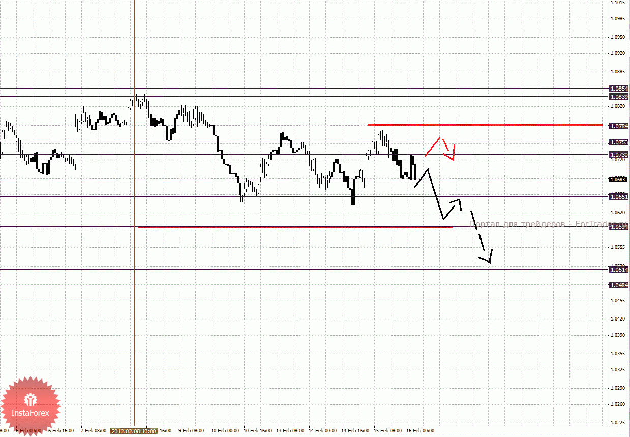 По паре Евро/Доллар следим за нисходящим циклом от 9 февраля