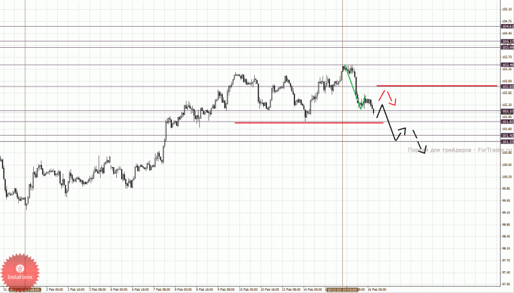 По паре Евро/Йена ключевыми уровнями являются: 104.61, 104.17, 103.99, 103.49, 102.85, 102.13, 101.82, 101.42 и 101.23. Здесь основные ключевые цели остались практически без изменения, однако необходимо отметить формирование нисходящего потенциала от 15 февраля. Уровень 102.85 является ключевым сопротивлением для развития восходящей структуры в масштабе Н1, его пробой позволит рассчитывать на движение к 103.49. Пробой уровня 103.49 продолжит развитие восходящей тенденции, в данном случае цель 103.99, в коридоре 103.99 – 104.17 консолидация цены. Пробой уровня 104.17 позволит рассчитывать на движение к потенциальной цели – 104.61, по достижении которого ожидаем откат книзу. В коридоре 102.13 – 101.82 мы ожидаем консолидированное движение, пробой последнего значения будет сопровождаться выраженным движением, в данном случае потенциальная цель 101.42. Диапазон 101.42 – 101.23 шумовой.