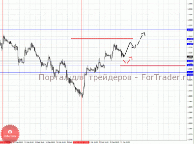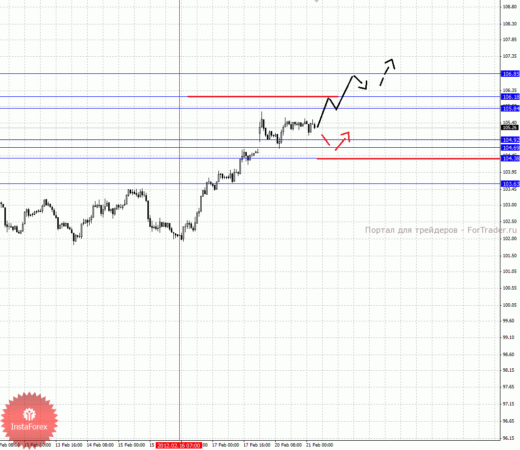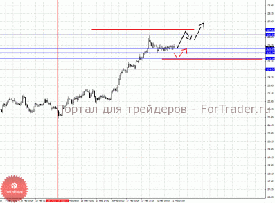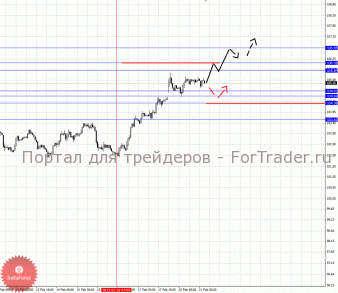 По паре Евро/Йена ключевыми уровнями являются: 106.85, 106.18, 105.84, 104.92, 104.69, 104.38 и 103.63. Здесь мы продолжаем следить за локальной восходящей структурой от 16 февраля. Краткосрочное движение кверху ожидаем в коридоре 105.84 – 106.18, пробой последнего значения позволит рассчитывать на движение к потенциальной цели – 106.85, по достижении этого уровня ожидаем откат книзу. Корректировочное нисходящее движение возможно в коридоре 104.92 – 104.69, пробой последнего значения приведет к углубленной коррекции, в данном случае цель 104.38, от этого уровня высока вероятность разворота кверху, его пробой окажет негативное влияние на развитие восходящего цикла от 16 февраля, в данном случае потенциальная цель – 103.63.